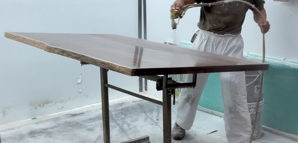 Unlike traditional lacquers or pre-catalyzed finishes, this system chemically cures after it’s sprayed, creating a finish that is tougher, more moisture-resistant, and better suited to withstand everyday wear and tear.